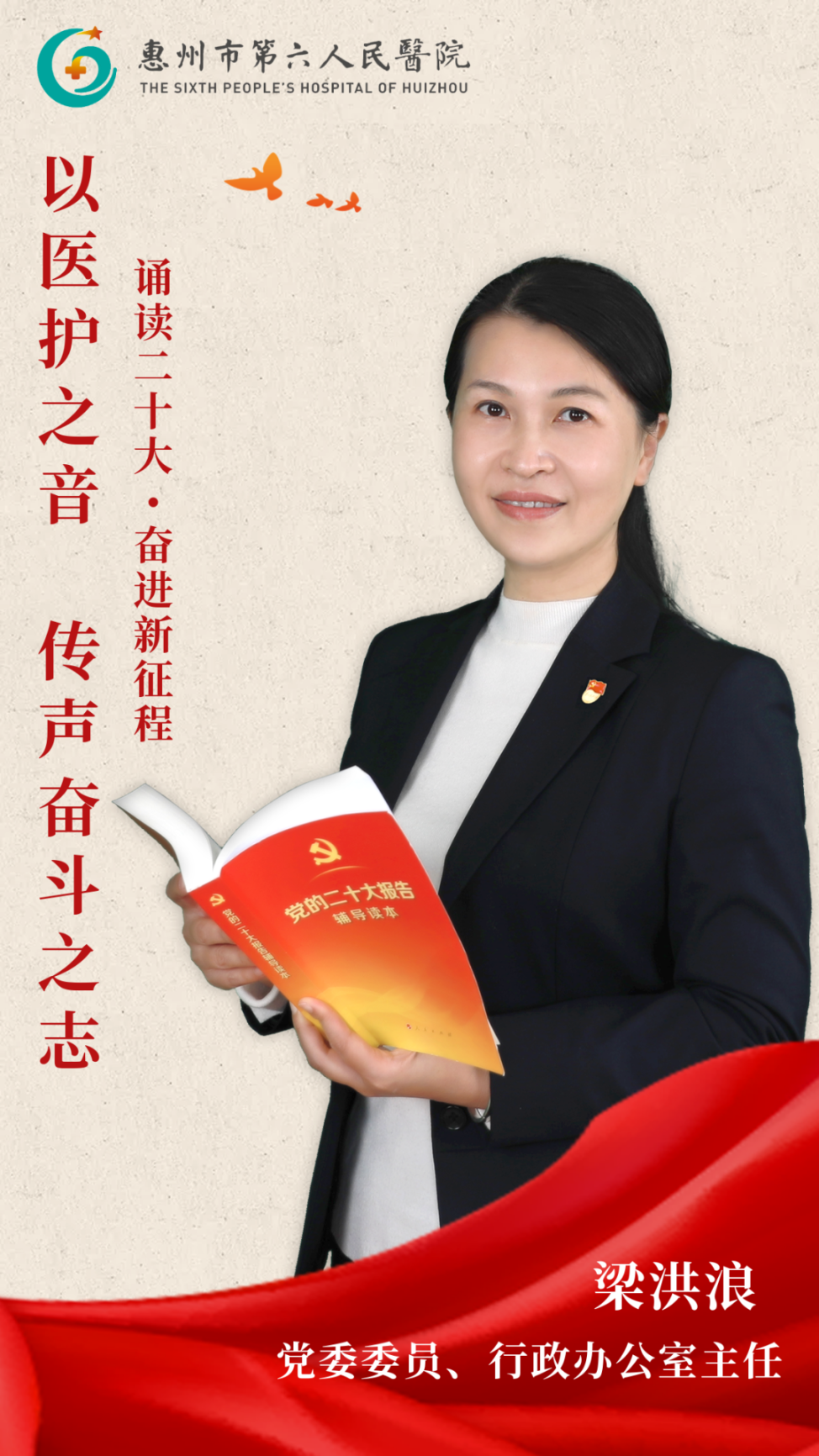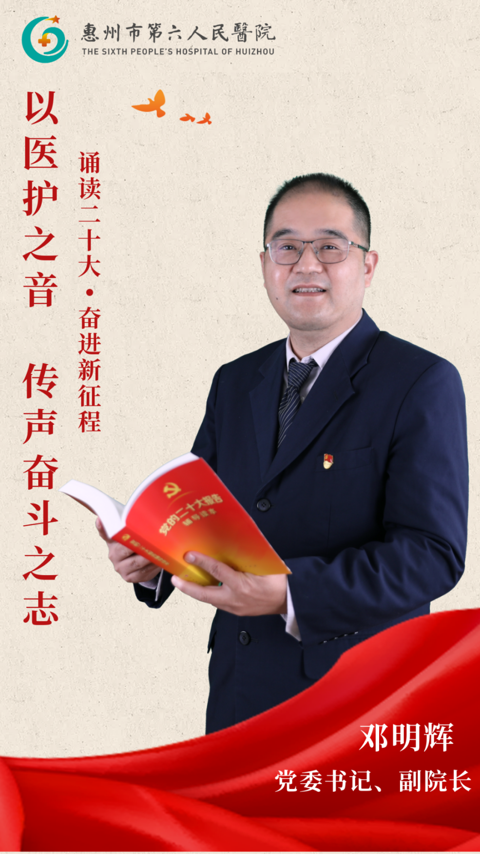 爲深入學(xué)習宣傳貫徹黨的二十大精神,引導黨員幹部學(xué)原文、悟原理,引領全院廣大黨員幹部在各自崗位上踔厲奮發(fā),勇毅前行,推動黨的二十大精神入腦入心、見行見效。惠州市第六人民醫院開(kāi)展以“誦讀二十大·奮進(jìn)新征程”爲主題的誦讀活動,組織27名黨員幹部誦讀黨的二十大報告原文,并在醫院公衆号陸續推出誦讀音頻。